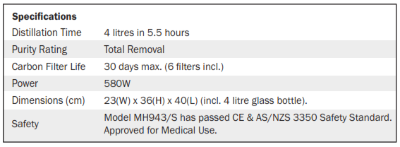 A most desirable, necessary and ideal home appliance! The Spring Flow Steam Distiller is easy to use. Simply fill with 4 litres of water and when you return, you’ll have produced healthy, great tasting, bio available and organic drinking water!